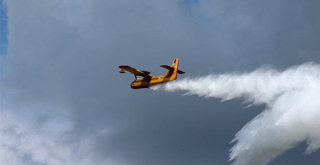 Στο σημείο επιχειρούν 35 πυροσβέστες με 20 οχήματα, 10 άτομα πεζοπόρο τμήμα ενώ με το πρώτο φως της ημέρας ξεκίνησε ρίψεις νερού από αέρος ένα Καναντέρ.